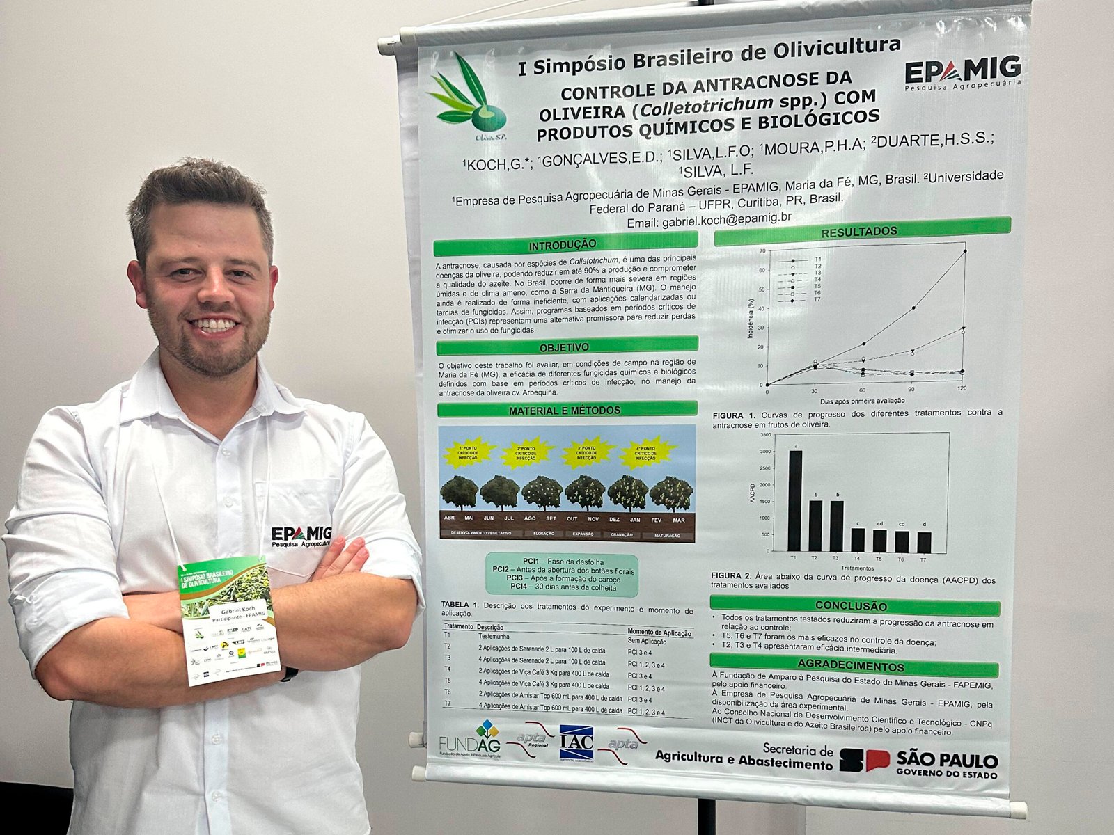 O pesquisador Gabriel Koch, lotado no Campo Experimental de Maria da Fé, que coordena três projetos na área de fitopatologia, voltados para o controle de doenças da oliveira, representou a EPAMIG no evento.